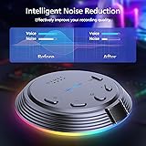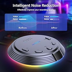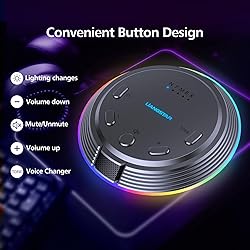【Clear Sound & Noise Reduction】This omnidirectional computer microphone has a built-in DSP smart chip, which can pick up your voice 360 degrees and automatically reduce noise, making your voice clearer and louder. 【5 Voice Change & 7 RGB Modes】There are 5 sound modes to choose from: Original Voice (N), Female Voice(F), Male Voice (M), Monster Voice (B), and KTV Voice (K). These modes make games and chats more interesting, and 7 RGB lighting changes can also add atmosphere as needed. 【One-Button Mute & Volume Control】The USB microphone has a blue indicator light when it is on, and a red indicator light when the one-button mute is on. The Mic's convenient volume control button allows you to increase or decrease the volume as needed. 【Plug and Play & Widely Compatible】No need to install drivers, just connect the microphone to your PC or laptop and it will work. This desk condenser microphone is compatible with Windows 7/8/10/11, Mac OS, and PS4/PS5. 【Easy to Carry & Creative Exterior Design】The HK1 microphone is only 4.33in diameter, 0.78in height, and weighs only 3.5 ounces, so you can carry it with you without taking up space. The excellent appearance design highlights your extraordinary self. 【One Microphone for Multiple Uses】This desktop microphone has a wide range of uses. It can be used for games, chatting, video conferencing, and online classes, as well as streaming, YouTube, podcasting, and recording.