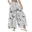WDIRARA Women's Newspaper Print Wide Leg Pants Elastic Waist Loose Funky Letter Print Palazzo Pants