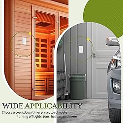 Automatically turns a load OFF on a countdown timer; saves energy by ensuring the light or fan is never left ON by mistake Six countdown timer options to choose from: 5 min, 10 min, 30 min, 60 min, 2 hour, and 4 hour; manual ON/OFF button overrides the timer When time delay is selected, the blue LED indicator will FLASH TWICE to indicate setting success THEN TURN OFF. It will be an ideal choice if you control the lights in the bedroom Perfect for lights, ceiling fans, bathroom fans, heaters, and any other appliances that are commonly forgotten NEUTRAL NOT REQUIRED (Ground wire required); 120VAC 60Hz, incandescent/halogen: 800W, LED/CFL: 150W, motor: 1/4Hp; operating temperature 32°F to 131°F; UL 94 V2 flammability rating; Single Pole Switch; UL listed; Screwless Wall Plate Included; 2 Pack