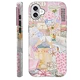 Generic Case Compatible with iPhone 16,Scratch Resistant Hybrid 2-Layer Hard Shell Phone Case,Pink Vintage Aesthetic Collage