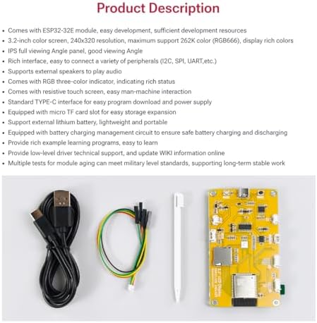 - Touch Screen: 3.5-inch LCD color screen, resolution of 240x320, maximum support 262K color (RGB666), rich colors, with resistive touch function.