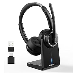 - TECKNET Wireless Headset, 5.3 ENC Bluetooth Headset with Microphone, Computer Headset Rechargeable, USB Dongle, Charging Base, On-Ear Headphones for Trucker/Remote Work/Call Center