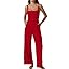 QINSEN Womens Casual Loose Overalls Jumpsuit Square Neck One Piece Sleeveless Wide Leg Rompers Outfits