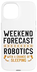This funny robot robotics engineer design reads weekend forecast robotics with a chance of sleeping and is a great robotics robot engineer teacher gift idea. Two-part protective case made from a premium scratch-resistant polycarbonate shell and shock absorbent TPU liner protects against drops Printed in the USA Easy installation