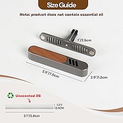PREMIUM DESIGN - The Glosiory car diffuser vent clips is expertly crafted from premium metal and natural walnut wood, offering a sophisticated and aesthetic that seamlessly complements any vehicle interior. Its timeless design not only serves as a functional car scent diffuser but also as a stylish car accessory that enhances your vehicle's ambiance and inteior.Adds a touch of luxury to any vehicle.- [Note: Natural wood grain varies,each piece is with different color&pattern.] HIGH QUALITY - Combines unmatched durability with timeless elegance. Our car deodorizer is craft from fade-proof zinc alloy and natural walnut wood, the robust metal construction is rust-resist and build to withstand wear and tear. A refined addition to your car and a great gift for anyone who values exceptional craftsmanship and style. VERSATILE USE - Everyone has a unique preference for scents. Our car air fragrance diffuser comes with six UNSCENTED fiber sticks and one convenient dropper that compatible with all types of essential oils or perfumes. Giving you freedom to create your own signature scent using your favorite essential oils or fragrances. Enjoy a personalized and worry-free aromatherapy experience that makes every drive delightful and uniquely yours. EASY INSTALLATION - This compact air freshener diffuser is designed for ultimate ease of use. The magnetic opening design allows for quick and hassle-free assembly, the sturdy clip ensures a secure attachment to various car air conditioning vent without slipping or falling. Simply add a few drops of your favorite fragrance or essential oil to the fiber stick, insert it in the diffuser, and clip it onto your car vent. Within simple setups you are ready to enjoy a refreshing and personalized driving experience. Perfect Gift - Package comes in an elegant gift box. Set includes 2 complete car diffuser units with 6 unscent replacement fiber sticks for extended fragrance life and one dropper. With its sleek and neutral design, our car air diffuser is a high-end car interior decor,automotive fragrance Decoration, a fantastic gift for men and women, friends and family in special days.