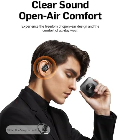 - 【Open-Ear Comfort & Safety】H9 open ear headphones feature skin-friendly silicone ear hooks and a lightweight 0.3oz body, ensuring no ear pain during long hours of use. The innovative design eliminates in-ear pressure, using air conduction technology to deliver natural sound while reducing strain on the eardrums and supporting ear health. Stay aware of your surroundings, whether you’re exercising or working, seamlessly switching between music and environmental sounds for enhanced safety and convenience.