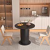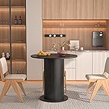 31.5 inch Round Dining Table for 2, Modern Farmhouse Kitchen Table, Small Circle Dining Tables with Wood Strip Base for Kitchen Living Room (Black)