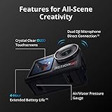 Essential Combo With Streamlined Accessories - The most cost-effective option for DJI Osmo Action 5 Pro featuring only core features. Great for quick outdoor trips, daily use, or anyone who prefers a minimalist setup. Upgrade with extra accessories anytime as your needs grow. Pro-Grade Night & Dynamic Imaging - Discover breathtaking imaging quality with DJI action camera 4K and its all-new 1/1.3" sensor. Advanced tech with 2.4 µm large pixels and 13.5-stop dynamic range delivers unmatched low-light performance and clarity. Always Centered, Always Focused - Achieve pinpoint accuracy with our advanced 4nm chip. DJI Osmo Action 5 Pro keeps fast-moving subjects perfectly centered in 16:9 or 9:16—ideal for vlogging, cycling, or capturing friends and pets in action.[7] Go Hands-Free with Voice Control - With voice commands always on standby [15], enjoy optimal recognition within one meter and high accuracy—making it easy to capture every moment while having fun. Dual OLED Touchscreens, Maximum Control - Front and rear ultra-bright OLED touchscreens make framing, playback, and parameter adjustment easy—ideal for motorcycle camera use. Enjoy crystal-clear visuals without removing the action camera. 360° HorizonSteady [17], Rock-Solid Footage - Industry-leading stabilization eliminates 360° roll-axis shakes, keeping your horizon level and motion smooth. This action camera captures first-person action or scenic landscapes with pro-quality stability. All-Weather, All-Day Power - This waterproof camera features a high-capacity 1950mAh battery, providing up to 4 hours [1] of recording, and 3.6 hours at -20° C(-4° F) [9]. IP68 rated for 20m underwater use [8], it delivers clear footage in any environment. Pro Audio, Effortless Vlogging - DJI Osmo Action 5 Pro supports direct wireless connection to DJI Mic 2/Mic mini transmitter—no RX needed—perfect for moto vlogging, skiing, solo-vlogging. Enjoy pure, high-quality audio! True-to-Life Color in Any Light - Equipped with a color temperature sensor for automatic white balance, DJI Action 5 Pro delivers natural, accurate colors—underwater or on land—no filters needed. Flicker-free, smooth transitions in any lighting.