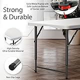 4 Feet Foldable Table Adjustable Height with Built in Handle, Steel Legs | 4FT Heavy Duty Portable | Perfect for Party Dining Wedding Events Picnic Indoor Outdoor Camping Utility Folding - 4 Foot