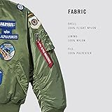 Authentic Design: Refer to Size Chart for Jacket Measurements. MA-1 flight jacket was the first military bomber jacket to cross into civilian fashion. Today’s version still hews to its original U.S. Air Force and Navy roots. Individual Style: Signature red ribbon hang tag on sleeve utility pencil pocket and Alpha Industries logo on the zig-zag zipper extension. Knit rib cuffs, collar, and waistband, 2 lower flap pockets, 2 interior welt pockets, and shirred sleeves. Form & Function: Reversible flight jacket with water-resistant nylon on both sides & double zipper pulls. True to the original design, MA-1 interior flips to Emergency Orange lining that was initially designed for downed pilots to signal for help. Fit & Recommended Use: This jacket is unisex - true-to-size for men’s core fit, recommended to go two sizes down for women’s fit. MA-1 flight jacket has a Core fit: extra room in the body & sleeves and sits just above the hip at waist length. Materials & Care Instructions: 100% Flight nylon shell, 100% nylon lining, and 100% polyester fill. Ideal as layering piece in mild or moderate weather, dry clean only.