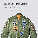 - Bright and proud squadron patches adorn this classic bomber, while a water resistant shell and reversible interior make this a versatile jacket for any occasion. Constructed from mid-weight flight nylon with water resistance, the MA-1 fighter pilot jacket was the first military flight jacket to cross over into civilian fashion. This current version has been kept as close as possible to the classic military specifications.