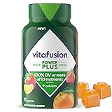 A 90-count bottle of vitafusion Power Plus Multi Vites Plus Calcium is a 30-day supply of chewable, nutritious gummies for adults Each 3-gummy serving provides 14 essential nutrients, like vitamin A and vitamin C, and supports energy metabolism, eye, muscle, and immune health (1), plus added calcium to support bones and teeth (1) Packed with 100% or more Daily Value of 10 essential nutrients, including vitamin D3, vitamin E, biotin, folate, vitamin B12 and B6 to support health and well-being (1) Flavored with a fruity fusion of tangerine and strawberry that feels like a treat to eat; a deliciously effortless multivitamin option for those who find traditional pills or capsules hard to swallow No high-fructose corn syrup, no artificial sweeteners, no gluten, no dairy, and no synthetic FD&C dyes; vitafusion multivitamins help support a variety of needs so you can rule your day and enjoy every tasty moment