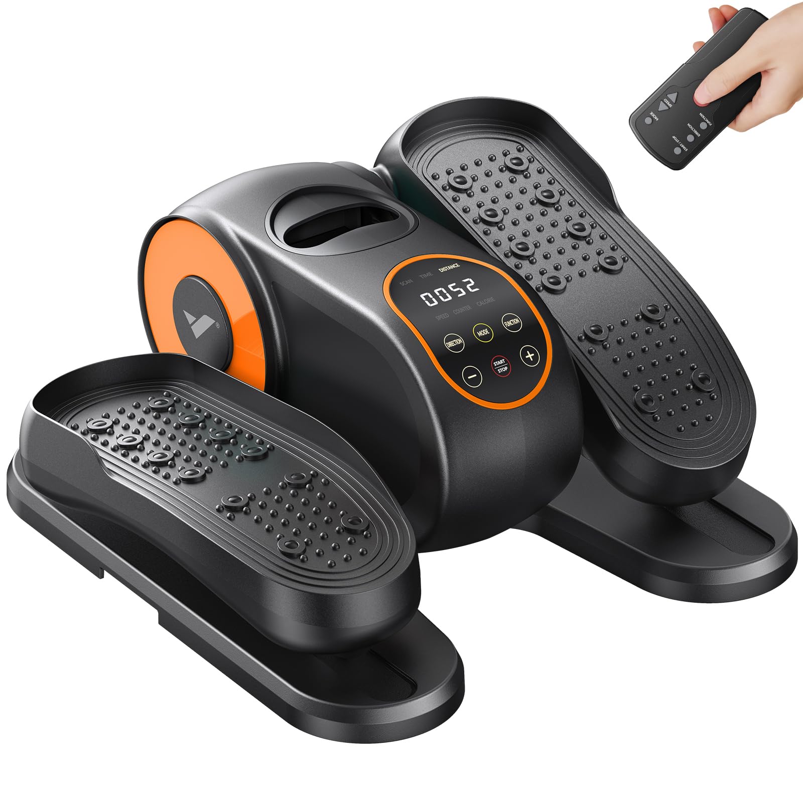 - Under Desk Elliptical Machine – Transform your desk into a personal fitness station with this low-impact elliptical. Designed for seniors, office workers, and those recovering from injury, it promotes circulation, strengthens muscles, and burns calories without straining joints. Featuring 8 adjustable resistance levels, it offers a customizable workout for both seated and standing use. The whisper-quiet motor (<15 DB) ensures a smooth, silent experience, perfect for home offices, apartments, or shared spaces. Anti-slip pedals with massage dots improve blood flow and joint flexibility, while the shock-absorbing design reduces knee impact for a comfortable workout. Its compact, portable design fits easily under desks or beside couches, making it ideal for tight spaces. Easy to assemble in just 15 minutes, this elliptical is 90% pre-assembled for your convenience. A perfect gift for health-conscious individuals, fitness enthusiasts, or anyone wanting to stay active while working. Whether you're at home, in the office, or in rehab, this under-desk elliptical is the ultimate solution for a healthier, more active lifestyle.