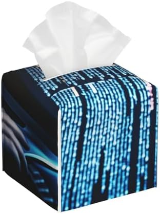 Programmer Programming Code Printed Square Tissue Box Cover Leather Modern Tissue Case Tissue Box Holder for Home Office Decor Bathroom Car