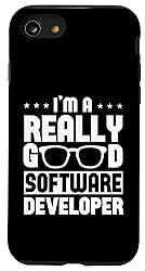 I'm A Really Good Software Developer - Amazing for a programmer, coder, or software developer who designs software using codes to fulfill the demands of users. Great for someone who works in the field of computer systems. Ideal treat for a software engineer, developer, or web developer. Perfect for a computer programmer, application developer, or computer specialist. This is a wonderful design to show off your programming skills on Programmers Day. Two-part protective case made from a premium scratch-resistant polycarbonate shell and shock absorbent TPU liner protects against drops Printed in the USA Easy installation