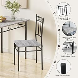 【Sturdy & Stable】 : The dining table and chairs are supported by metal legs and possess a robust structure. Thick planks and strong metal with a smooth finish ensure sufficient weight to offer you a reliable dining experience. The table has a load-bearing capacity of up to 220 pounds, and each chair can withstand a weight of up to 330 pounds. 【Stylish Dining Table】: The 43.3-inch table top complements various decorative styles. Additionally, the smooth surface and rounded corners of the desktop are effortless to maintain, ensuring that this elegant dining table chair remains functional and beautiful for many years to come. The rustic surface makes it an ideal complement to the living room, kitchen, and dining room. Furthermore, all the mess can be cleaned up with a single wipe, which is convenient. 【Space Saving Design】: Compared with dining chairs with armrests, armless dining chairs provide people with an open feeling. When not in use, the chairs can be neatly stored under the table, liberating valuable space for other activities. The size of these chairs has been meticulously designed so that they can be easily hidden under the table after use, saving precious space. 【Comfort & Safety Prioritized】: The chair's reclining backrest has been ergonomically designed to offer optimal support for your back, providing comfort during prolonged sitting. Besides, every corner of our kitchen table set is rounded, minimizing the risk of injuries in the event of accidental collisions. Moreover, the dining chairs are equipped with non-slip foot pads that enhance stability. 【Perfect for Families】: The dining table for four people consists of a rectangular dining table with dimensions of 43.3 "x 26.8" x 29.3 "(L x W x H) and four chairs with dimensions of 16.1”x 14.6”x 34.3” (L x W x H), which is suitable for small to medium-sized gatherings and family meals at home. Moreover, it can serve as a work table or a game table as per your requirements.