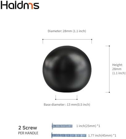 Haidms 10 Pack Black Cabinet Knobs Black Ball Knobs for Dresser Drawers Round Kitchen Cabinet Handles, Aluminum Alloy