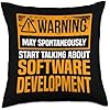 - Warning May Spontaneously Start Talking About Software Development - Ideal for a programmer, coder, or software developer who designs software using codes to fulfill the demands of users. Great for someone who works in the field of computer systems.