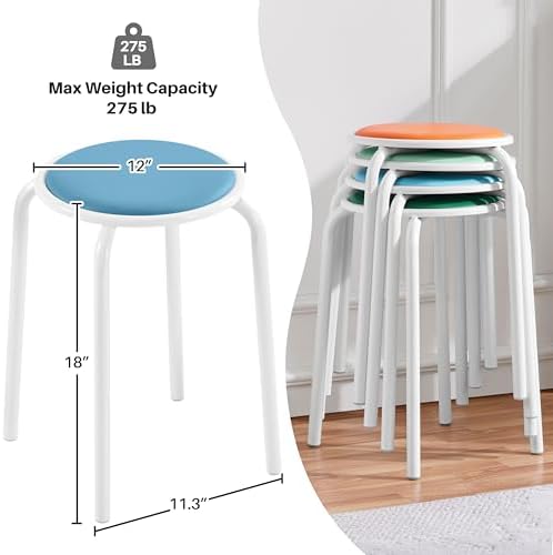 - Indoor & Outdoor Use: With an 18″ seat height, these stackable stools match standard-height desks, offering a practical solution for home gatherings and creative spaces. Also ideal for outdoor activities like backyard barbecues, or art sessions