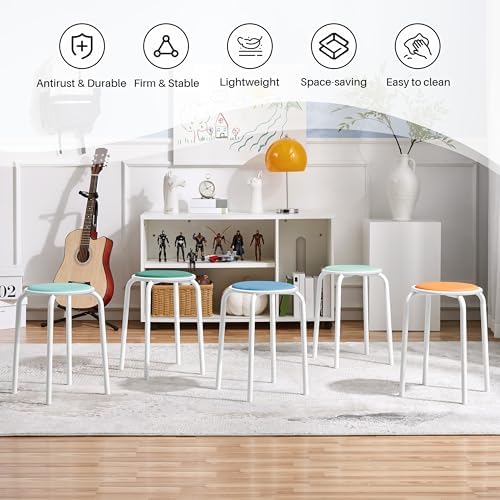 Yaheetech Stackable Stools with Padded Seats Stacking Bar Stools Chairs Set of 5 Colorful Decoration for Home Office Dining Round Seating with Iron Frame