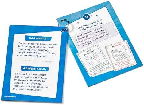 Prepare students for the digital world with engaging activities! These cards provide structure by giving students challenges to problem-solve and reach a solution. The Intermediate Task Card Set introduces the fundamentals of digital citizenship in an easy-to-understand way. Each set includes 18 standards-aligned task cards. Each card features a task prompt based on a real-world solution, an illustration to help students visualize the desired outcome of the task, a “Think About It” Scenario, and an additional activity to extend student learning. The “Think About It” Scenarios encourage critical reflection on digital actions while also incorporating key computer science vocabulary to build both digital and technical literacy in your classroom. These Task Cards are available in both beginner and intermediate levels, ensuring students develop. This set is the Intermediate Set for ages 8+. For over 55 years, hand2mind has encouraged hands-on learning and discovery, driving deeper understanding and helping children unlock their full potential. hand2mind specializes in science kits and stem toys designed to help students learn by doing. Our offering of stem kits range from chemistry sets to rocket science kits to earth science sets and much more. From early science kits to middle school lab supplies, hand2mind has you covered with products designed to enhance learning in the classroom and the world around us. Through hands-on exploration and discovery, we strive to find new ways to encourage students in math practice, literacy activities, STEM education and more!