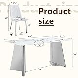 Marble Dining Table Set for 4: The white and silver color makes this 4 chair dining table set look luxurious, adding a modern touch to your home. Whether used for family dinners or friends gatherings, this modern dining table set for 4 will become the focus of the party, and create an elegant atmosphere for you Spacious and Comfortable: The table's size 63"Lx37"Wx30"H. Spacious tabletop make you fully enjoy your meal with friends or family. The chairs' szie 16.3"Lx17"Wx35"H. The height is adapted to the table, so you won’t feel tired when using the white dining table set for 4 Elegant Dining Table Set for 4: The tabletop of this morden dining table set for 4 is made of tempered glass with marble pattern, which is beautiful and radiation-proof.The marble dining table's legs adopt a unique butterfly-shape design, which is both aesthetically pleasing and stable Faux Leather Dining Chairs: The seat cushion is thickened, with the ergonomic backrest, giving you a soft and comfortable experience.The bow-shaped leg makes the chair more stable and less likely to shake, allowing you to use this dinette table set for 4 with peace of mind Easy to Clean and Maintain: This dining table set for 4 with chairs is functional. Whether used in the restaurant, kitchen, living room or conference room, this marble dining table set for 4 can be perfectly integrated.And you can simply wipe the stains clean with a damp cloth, saving valuable time