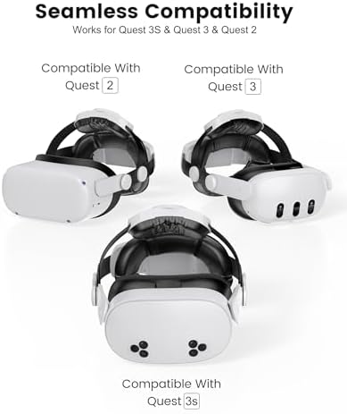 - 【Compatible with Meta Quest 3S/Quest 3/Quest 2】Upgrade your VR experience with our enhanced head strap, designed for seamless compatibility with Meta Quest 3S, Quest 3, and Quest 2. It includes two sets of connection fasteners, allowing you to choose the right fit for your device. The ergonomic design effectively reduces facial pressure, providing a more immersive gaming experience.