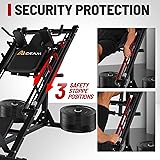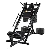 2-In-1 LOWER BODY TRAINING MACHINE: 45-Degree Leg press hack squat combo provides an awesome lower body exercises by adjusting the placement of your feet on the foot plate. Perfect for home gym, leg press and calf raises allow you to effectively and safely build leg strength and reduce the back strain that can be associated with traditional squats. LOW NOISE & SMOOTH TRAINING EXPERIENCE: We used more stable linear bearings instead of rolling bearings, which provide a more even application of force for optimal lower body workout, makes your every movement more stable,smooth and low noise. MULTIPE PROTECTION: This workout machine featuring a heavy-duty, high-strength steel main frame with a Max 1400lbs plate loading, it is built to meet the demands of most exercisers, and the triangular support structure ensures overall stability and durability. Three safety locking positions and Two gravity-cushioning springs to prevent accidental side-slipping while in use, and large diamond-plated footplate increases friction to better grip the user's shoe soles. COMFORT EXERCISE EXPERIENCE: This leg press and hack squat gym machine features thick shoulder and backrest cushion wrapped in premium anti-slip and wear-resistant leather surface, providing ultimate and long-lasting comfort to ease your strain and stress, and protecting your bones and joints during your bodybuilding.