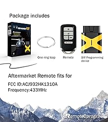 - The Best Affordable Brand New Proximity Smart KeyWe provide you with brand new replacement Proximity Smart Key remote select vehicles, remote comes with a battery already installed in the device. We test every single remote before we send it to make sure it is transmitting and functioning just like the original one. Keep in mind: The original key must have EXACTLY the same buttons and FCC, it to work.Compatibility :For 2016-2018 Honda AccordReplacement for:FCC ID: ACJ932HK1310A P/N: 72147-T2G-A51 Frequency: 433MHz Chip: ID47Disclaimer: Remote2program kit is only used by car owners to program their own vehicles, and other actions are not affiliated with Remote2program