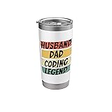 Funny coder dad design that says Husband Dad Coding Legend. Nothing shows that you're a coding dad on Father's Day more than declaring that you're a husband, dad, and coder legend. Dual wall insulated: keeps beverages hot or cold Stainless Steel, BPA Free Leak proof lid with clear slider