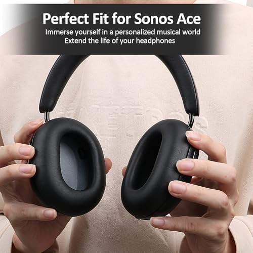 Ear Cushions Replacement Earpads Compatible with Sonos Ace Headphones with Memory Foam, Protein Leather& Internal Magnet (Black)
