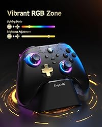 - EasySMX D05 PC Controller with Charging Dock, RGB Backlit Wireless Controller for PC/Switch/iOS/Android/Steam with 1000mAh Battery