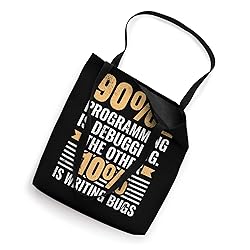 90 of programming is debugging. The other 10 is writing bugs.This design is perfect for Developers who love debugging, programming, and coding struggles. An ideal debugging design for Developers who love programming and problem-solving. You are perfect for this Debugging Struggles design. 16” x 16” bag with two 14” long and 1” wide black cotton webbing strap handles. Made of a lightweight, spun polyester canvas-like fabric. All seams and stress points are double-stitched for durability, and the reinforced bottom flattens to fit more items and hold larger objects. Spot clean/dry clean only.