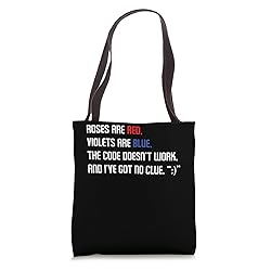 Roses are red, violets are blue, The code doesn’t work, And I’ve got no clue. “:)”. This design is perfect for developers who enjoy debugging, troubleshooting, and writing creative solutions. And an ideal design for engineers who tackle code issues with artistic flair. You are perfect for this Software Developer Poems Troubleshooting Design. 16” x 16” bag with two 14” long and 1” wide black cotton webbing strap handles. Made of a lightweight, spun polyester canvas-like fabric. All seams and stress points are double-stitched for durability, and the reinforced bottom flattens to fit more items and hold larger objects. Spot clean/dry clean only.