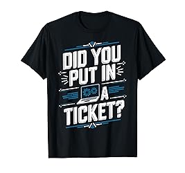 - Here is a funny gift idea for IT Support workers, Helpdesk, Service desk, IT network support, or anyone working in the computer. Also great for funny computer programers, developers, or software code lovers. Perfect for IT guy or IT girl. Inject some office humor with this IT saying for your colleagues, work mates, or friends in the computer field. Funny slogan with good laughs, gags, and puns. Gift for network administrator or system engineers working with computers and keyboards. This Did You Put In A Ticket Computer Support Work Humor is designed by IT Support IT Help Desk Computer Support Tech.