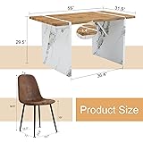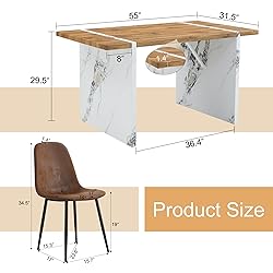 Modern Dining Table Set:Elevate your dining space with this stunning 5 piece dining table set. Featuring a beautifully crafted wood tabletop paired with marble-patterned legs, offering a stylish touch for any dining room Durable Materials:The wood dining table set for 4 is made from premium wood with a sleek finish, ensuring both beauty and durability. The legs of the rectangle dining table for 4 are designed with a faux marble finish, offering an upscale aesthetic Spacious and Functional:Designed with convenience in mind, this dining table set for 4 with chairs provides ample space for enjoying meals with family or hosting friends. Clean lines and functional design make the 4 seat dining table set versatile for any occasion Adaptable to Multiple Settings:The modern dining table set for 4 easily adapts to different environments. Whether you’re looking for a compact dinette table set for 4 or a more refined dining solution, this dining room table set for 4 offers versatility Easy to Maintain:The dining table features a easy-to-clean finish that keeps spills and stains. Whether you have a busy family or enjoy hosting dinners, maintaining your dining table and chairs set of 4 is hassle-free as beautiful as the day you bought it