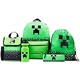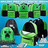 Minecraft Boys Backpack 5 Pc Gift Set with Creeper School Bookbag, Lunch Bag, Pencil Case, Water Bottle and Travel Daypack (Green)