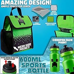 - Level up your gear with these awesome Minecraft backpack sets—designed for kids who love adventure, creativity, and their favorite game! Each bundle includes a durable Minecraft backpack, insulated kids lunch box, and reusable Minecraft water bottle, making it easy to carry all your daily must-haves. Whether you choose the set with the pencil case and drawstring bag or the one with a rubber charm keyring and a cute lanyard, you’re getting a gift set packed with function and fun. With vibrant designs featuring popular Minecraft elements, these bags bring style and utility together. The pencil case or pencil pouch are great for storing pens and markers, while the drawstring backpack is perfect for quick trips or keeping gear separate. The lunch box keeps meals fresh, and the kids' water bottle makes staying hydrated easy and fun. Looking for unique Minecraft accessories? These bundles are a great choice for any fan. From the creeper keychain to the themed lanyard, every piece adds to the excitement. Whether you're shopping for a birthday or just upgrading everyday gear, this Minecraft backpack set is ready to go!