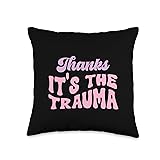 Mental Health Trauma design. "Thanks it's The Trauma" Mental Heath therapy Cool Saying about trauma for those who have Anxiety and for introvert people 100% spun-polyester fabric Double-sided print Filled with 100% polyester and sewn closed Individually cut and sewn by hand Spot clean/dry clean only