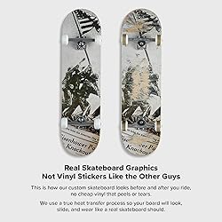 EASY UPLOAD: Creating your own skateboard graphic has never been easier. Click the “Customize Now” button and upload your image. Format it, add text, and done! HIGH QUALITY PRINTING: We don’t just print out a big sticker like those “other guys”. We use a high quality printing process that will make your image look as high resolution as the boards the pros ride. ENDLESS POSSIBILITIES: Our custom skateboards work great for printing photography, drawings, and paintings. The possibilities are truly endless when it comes to creating your very own one of one skateboard. However, we cannot print boards that involve copyrighted material, trademarks, or other use of intellectual property. PRINTED IN PORTLAND: All of our custom skateboards are pressed and printed here at our Portland, Oregon headquarters. FULLY ASSEMBLED: Our skateboard completes comes fully assembled with professional grade components, and is ready to ride directly out of the box.