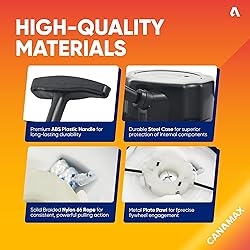 PACKAGE INCLUDES: 2 x 63022 Pull Start Starter Recoil. It fits for Harbor Freight Predator Earth Auger Quake MC43 52CC 2HP. FIT MODELS: Fit for Earthquake E43 E43CE E43WC auger/ drill, MD43 Dethatcher, MC43 MC43CE MC43E MC43ECE MC43RCE tiller/ cultivator, DP10P WP4310 water pump; Eskimo M43 MAKO 10" 43CC gas anger (M43Q10), M43 MAKO 8" 43CC gas anger (M43Q8), M43Q9 MAKO 43CC 9 inch quantum (M43Q9); S33Q8 STING RAY 33CC 8 inch quantum (S33Q8), Z51Q10 SHARK 51.7CC 10 inch quantum (Z51Q10), Z51Q8 SHARK 51.7CC 8 inch quantum (Z51Q8), Z51Q9 SHARK 51CC & 9 inch quantum (Z51Q9) and more. OPTIMAL PERFORMANCE FOR ENGINES: The Recoil Pull Starter is a reliable backup starting mechanism that activates the engine by pulling a rope or handle. It generates rotational force through a spring system and rotor, which is ideal for outdoor tasks or emergencies in areas without grid electricity. It fixes the following symptoms: Dirty |Rope breaks | Connection failure | Spring slides out of place | Will not spin. HIGH-GRADE QUALITY: It’s made of Premium Acrylonitrile Butadiene Styrene plastic that is wear-resistant and can be used for long service life. Moreover, the Nylon 66 pull rope delivers superior strength and flexibility, preventing fraying and breakage even under tough conditions. Designed to withstand the test of time, it keeps your engine running smoothly, no matter the challenge [CANAMAX] LIFETIME PROTECTION: We are dedicated to offering you quality replacement parts tested for efficiency. In case our product doesn’t serve you the purpose it is intended to, we offer a refund with no questions asked. Get risk free purchases with us.