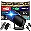 Mini Projector with WiFi and Bluetooth Built-in Apps Smart Projector Support 4K 1080P FHD 180° Adjustable Auto Keystone Compatibile with HDMI/TV Stick/Memory Stick/Laptop, White