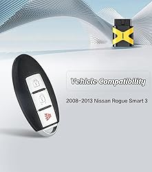 - The Best Affordable Brand New Proximity Smart KeyWe provide you with brand new replacement Proximity Smart Key remote select vehicles, remote comes with a battery already installed in the device. We test every single remote before we send it to make sure it is transmitting and functioning just like the original one. Keep in mind: The original key must have EXACTLY the same buttons and FCC, it to work.Note: 1. Please make sure the remote can work with your vehicle before purchasing, especially FCC, frequency and button 2. Need one working remote to start ignitionCompatibility :For 2008-2013 Nissan RogueReplacement for:FCC ID: CWTWBU729 Frequency: 315MHzDisclaimer: Remote2program kit is only used by car owners to program their own vehicles, and other actions are not affiliated with Remote2program