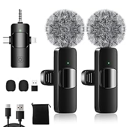 Plug and Play: The mini microphone doesn’t require any apps or Bluetooth pairing. Just plug the receiver into your device and power on the wireless microphones, and they will automatically pair without any complicated setup. Suitable for recording vlogs, interviews, live streaming, YouTube, TikTok, Instagram, online meetings and more. 4 in 1 Powerful Compatibility: Weton upgraded mini mic wireless includes 2 transmitters and a 3-in-1 universal receiver and a Extra USB adapter, which is widely compatible with various devices, Compatible with android smartphones, iphone(including iPhone 15), iPad, laptops, personal computers, camera etc. The receiver can be connected to two microphones at the same time. (Note: Please turn on the "OTG" function of your USB C device before pairing) Stable Wireless Transmission: The wireless lavalier microphone requires no cables and provides a stable audio signal up to 65 feet. You can hold it by hand or clip it on your shirt. In addition, the lapel microphone equipped with dual windproof sponges, it maintains exceptional performance even in windy conditions. Intelligent Noise Cancellation: Our dual wireless microphone features a built-in active noise reduction chip and high density spray-proof sponge that helps to cuts off any noise interference and improve audio quality. With 360° omnidirectional pickup, it ensures pristine sound quality while minimizing background interference and helps to record every detail of the sound clearly regardless of the surroundings. Rechargeable Transmitter and Receiver : The lapel microphone transmitter and receiver have built-in rechargeable batteries, they can be used for up to 6 hours after about 2 hours of charging. Furthermore, this microphone for iPhone also supports charging while recording. Three Modes: Receiver button to switch modes, green light on behalf of the amplifier mode, it is recommended to use in the speaker; ice blue light on behalf of the camera mode, it is recommended to use in the camera, sound card; blue light on behalf of the cell phone mode, it is recommended to use in the cell phone, tablet, laptop. Comprehensive Accessory Support: Weton wireless microphones for camera come with wireless Microphones*2, 3 in 1 universal Receiver*1, Anti-spray Sponge*2, Windscreen Cover*2, USB Adapter*1, Type C Charging Cable *1, Storage Bag * 1, User Manual * 1.
