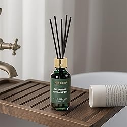 Airkeep Reed Diffuser Set, 3.38 fl oz (100 ml) - Wild Mint&Eucalyptus Oil Diffusers with 8 Reed Sticks, Home Fragrance Reed Diffuser for Bathroom Shelf Decor