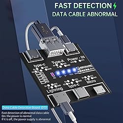 Professional-Grade Tool:A must-have for repairsmiths, offering reliable data cable testing. Portable Design:Compact and lightweight, the DT3 Data Cable Detection Board is ideal for on-the-go electrical diagnostics. Efficient Diagnostics: DT3 ON-OFF Data Cable Detection Board swiftly identifies cable issues for quick repairs. Versatile Compatibility:Supports for iPhone, Android, and Type-C/Micro Lightning cables, ensuring broad device compatibility. Precise Switching:Features a precise ON-OFF switch for easy data cable testing and troubleshooting.