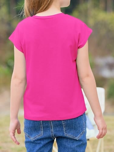 Imily Bela Girls Short Cap Sleeve T Shirts Kids Crew Neck Casual Loose Summer Tops 5-14 Years