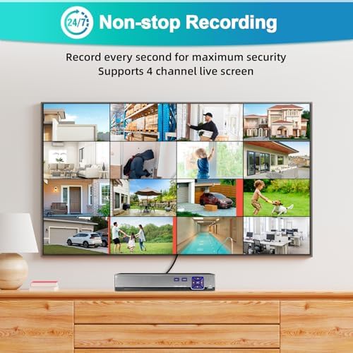 - 【Convenient Operation Experience】You can quickly complete various settings, such as video mode adjustment, channel management, playback search, and more. In addition, our 24/7 recording security camera also supports remote access function, you can view real-time surveillance pictures and video playback through mobile phones, computers and other devices in any place with a network connection, without worrying about geographical restrictions, and will not miss any wonderful moments.