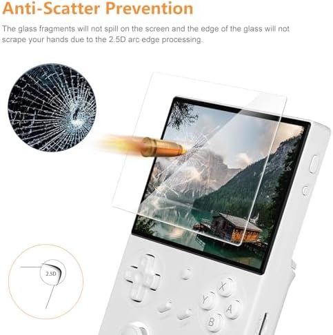 - 🎮【3 PCS Screen Protector Compatible with Anbernic RG40XXV】- Tempered glass film provides a Security guarantee to your liquid crystal screen with all-round protective premium paper package including 3 sets of cleaning kits, intimate care with 3-pack. NOTE: Due to the curved edge of electornic device, the screen protector will NOT cover the full screen, but only the flat area.