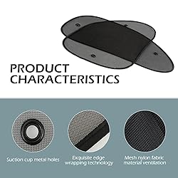 - The sunshade mesh is made of high quality breathable mesh gauze material, which has excellent breathability and ensures air circulation.The sunshade mesh adopts suction cup type installation, no need to punch holes or use tools.After purchase, you will receive two car front side window glass sunshade mesh and four mounting suction cups. The product size is 26 inches x 15 inches.